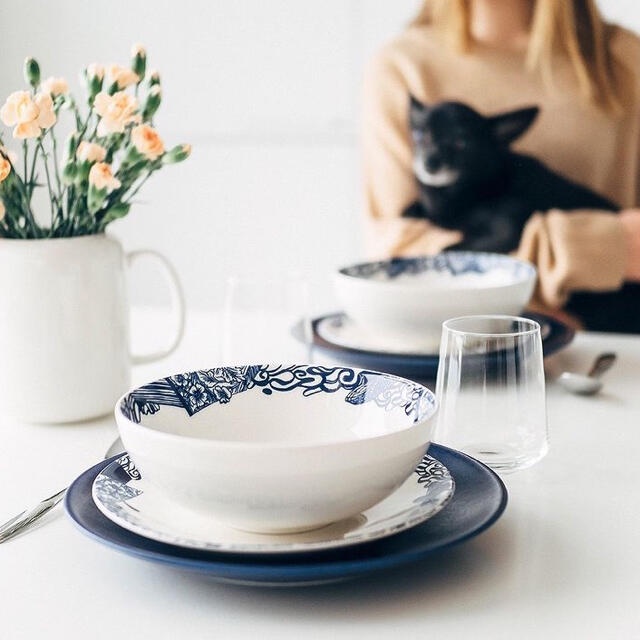 Bộ sưu tập Arabia 24h với vẻ đẹp vượt thời gian nay đã được bổ sung thêm họa tiết Piennar màu xanh lam mới. Những bông hoa tinh tế kết hợp cùng các họa tiết cắt ghép trừu tượng tạo nên một bức tranh sứ thú vị mang hòa âm giữa phong cách đương đại và truyền thống.