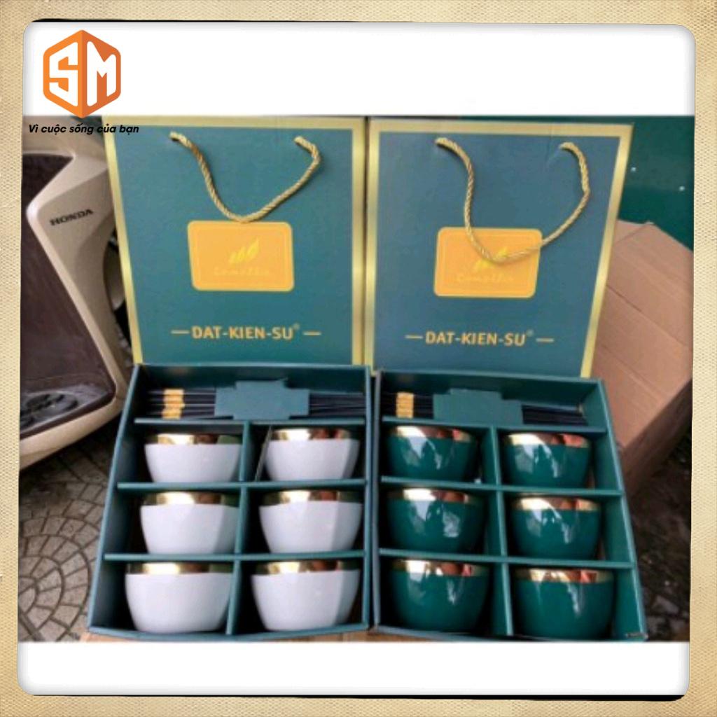 Bộ Bát - Bát ăn cơm Chén ăn cơm sứ Bộ bát quà tặng gốm sứ viền vàng cao cấp hộp đẹp tặng kèm 6 đôi đũa-CAO CẤP
