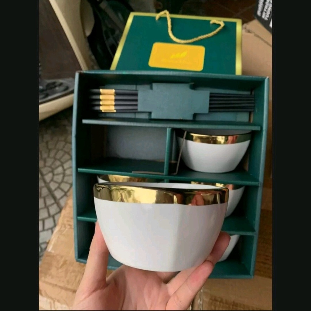 Nhà cửa & Đời sống > Bộ đồ bàn ăn > Tô || Bộ Bát - Bát ăn cơm Chén ăn cơm sứ Bộ bát quà tặng gốm sứ viền vàng cao cấp hộp đẹp tặng kèm 6 đôi đũa-CAO CẤPCòn hàng