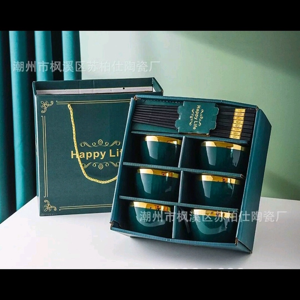 - Bộ Bát ăn cơm bao gồm : 6 bát , tặng 6 đôi đũa , hộp đẹp