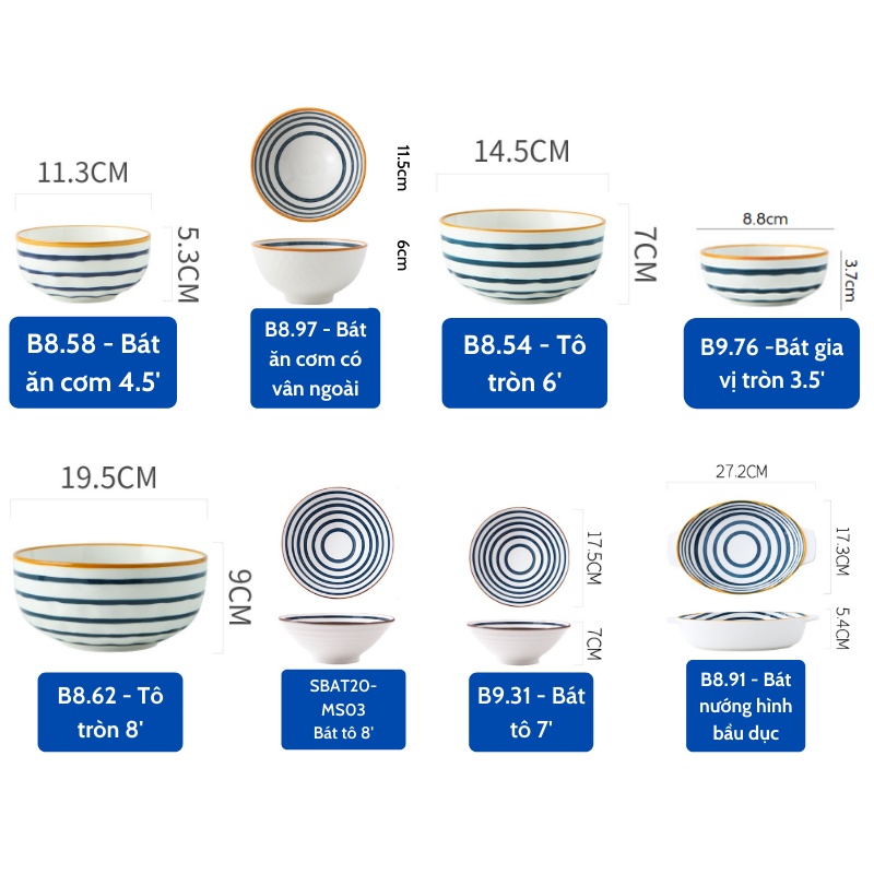 Bộ bát - bộ sưu tập các loại bát phong cách Nhật - họa tiết vòng tròn - decor nhà bếp - trang trí căn bếp của bạnTHÔNG TIN SẢN PHẨM