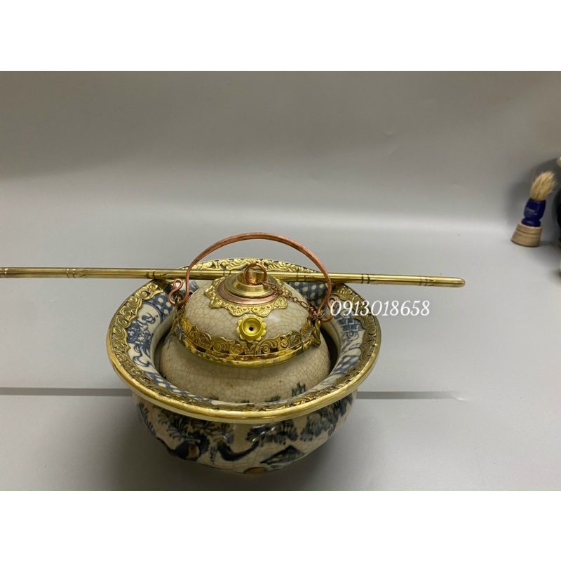 ✔ Sản phẩm điếu bát Bát Tràng được bọc đồng với chất liệu men lam đặc trưng của làng gốm tạo cho sản phẩm nét gì đó cổ xưa, tao nhã.