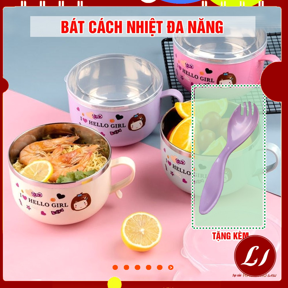 Bát cách nhiệt 2 lớp LÕI INOX có nắp đậy đa năng-loại TO -QATE0149