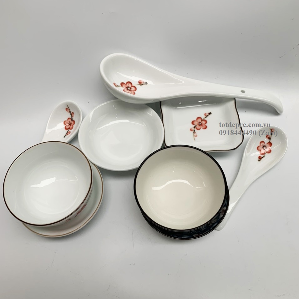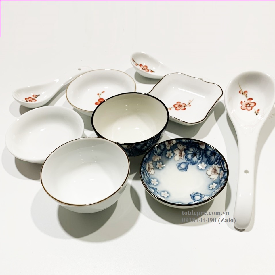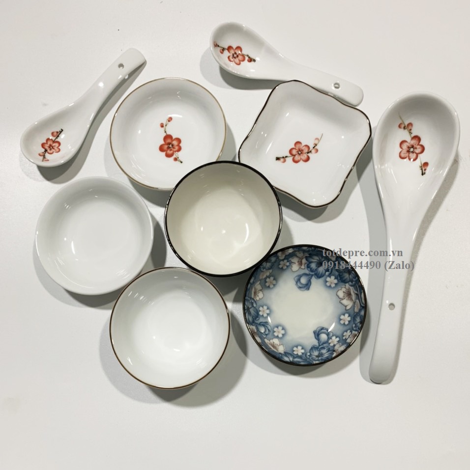 Bát chấm đĩa muối gốm sứ Bát tràng thìa cơm thìa súp sứ , thìa canh men đẹp họa tiết sang trọng