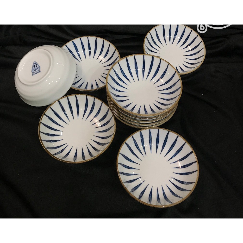 Bát Chấm Sứ, Đĩa Đựng Gia Vị Sứ Họa Tiết Kẻ Trúc xanh sọc dưa