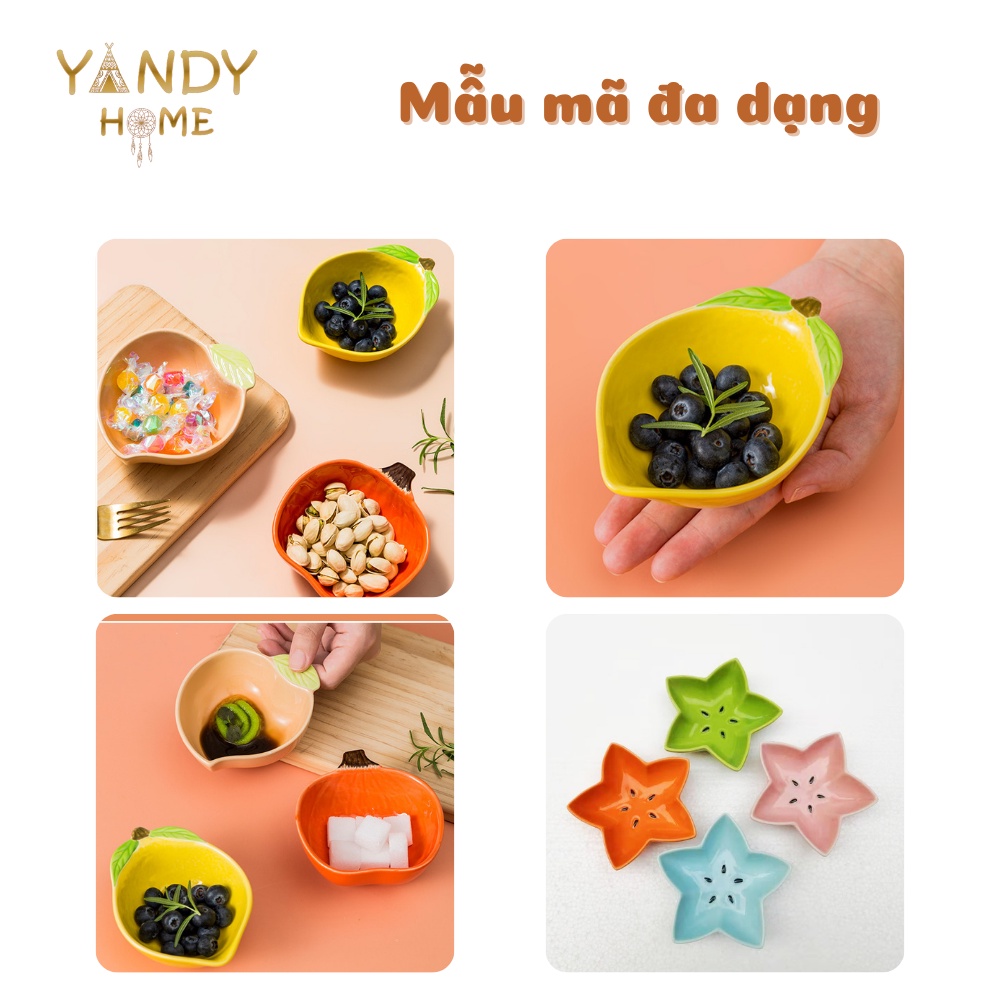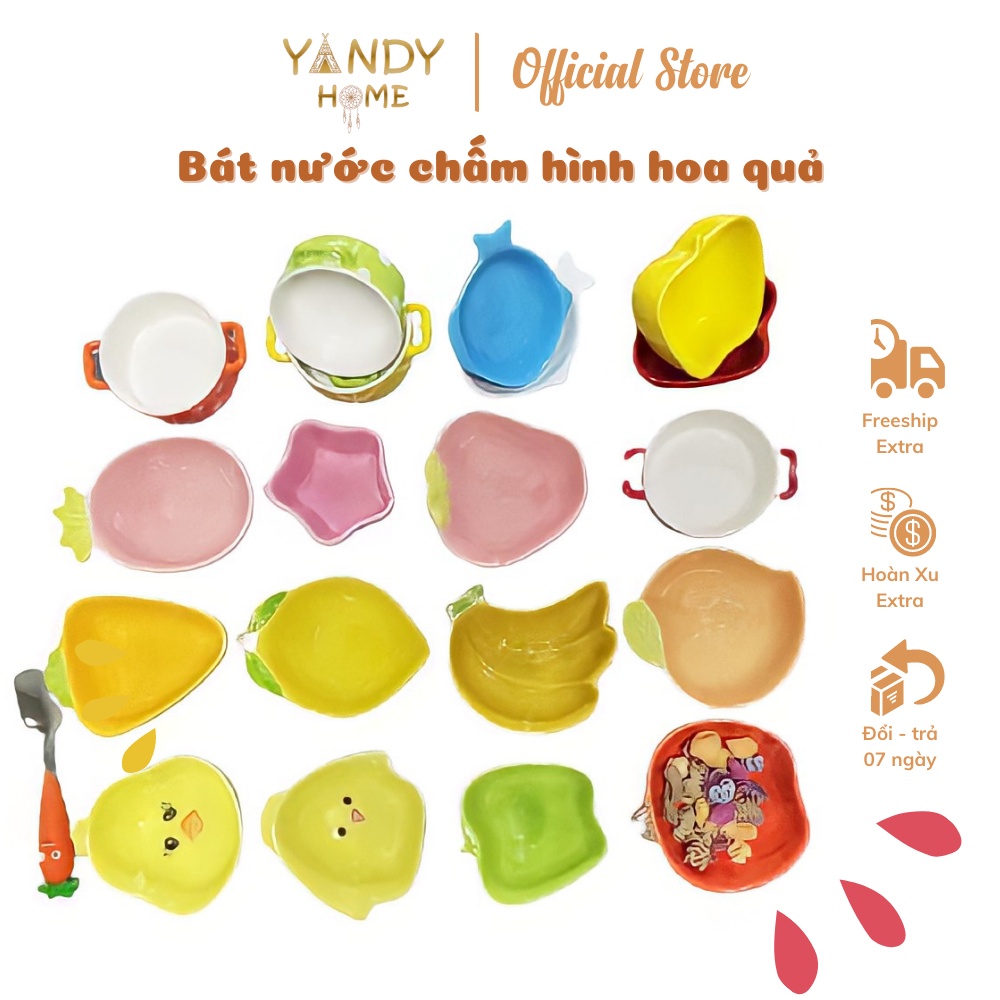 Bát chén dĩa nước chấm gia vị YANDY HOME B01 ăn dặm cho bé bằng gốm sứ men đẹp bóng hình quả con vật nồi niêu