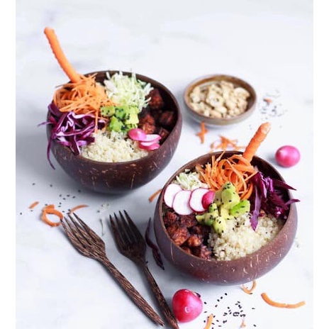Nhà cửa & Đời sống > Bộ đồ bàn ăn > Tô || Bát chén gáo Dừa 100 % tự nhiên cao cấp dùng ăn Salad, hoa quả dầm tặng kèm thìa gỗCòn hàng