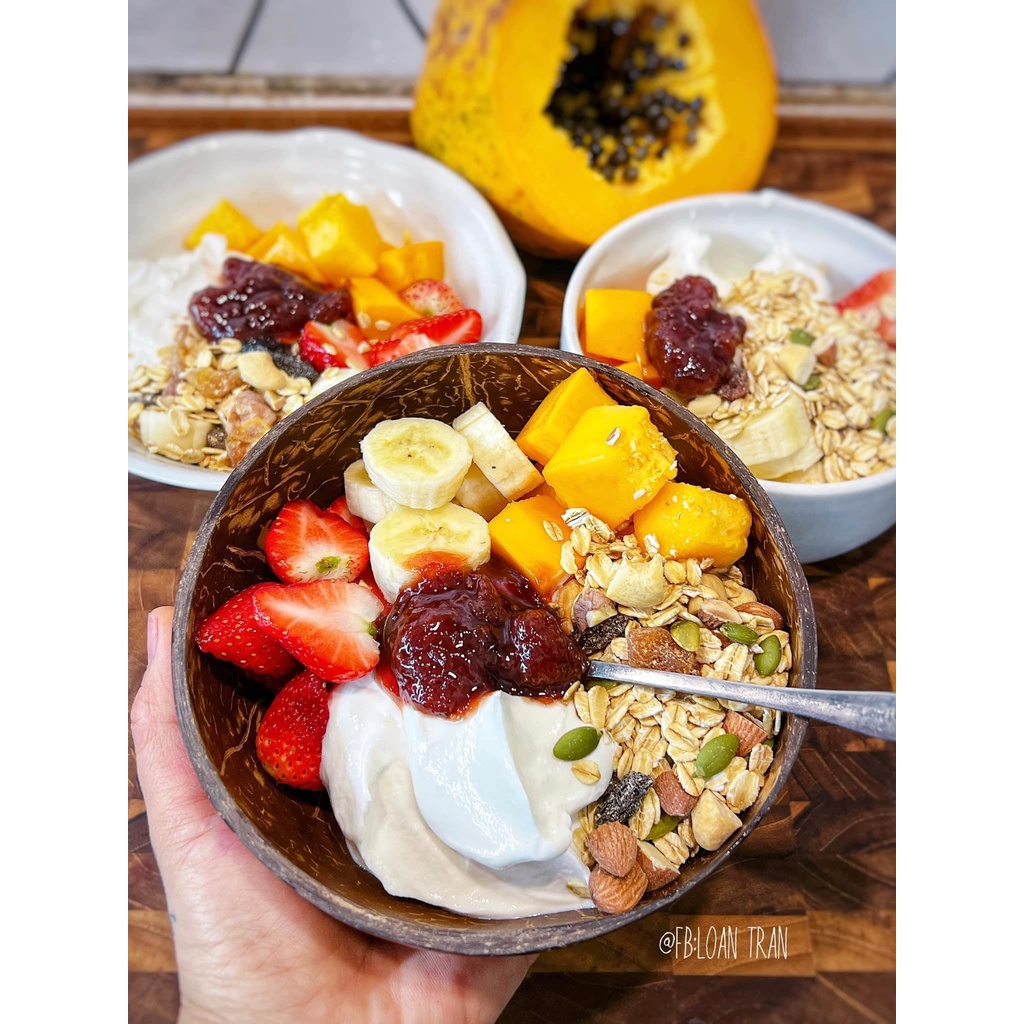 Giới thiệu Bát chén gáo Dừa 100 % tự nhiên cao cấp dùng ăn Salad, hoa quả dầm tặng kèm thìa gỗ