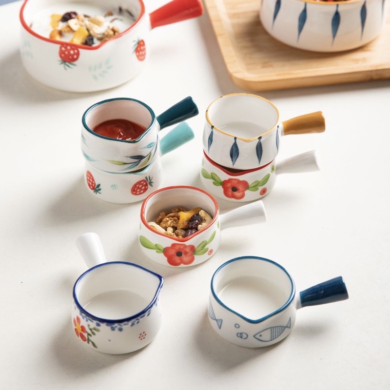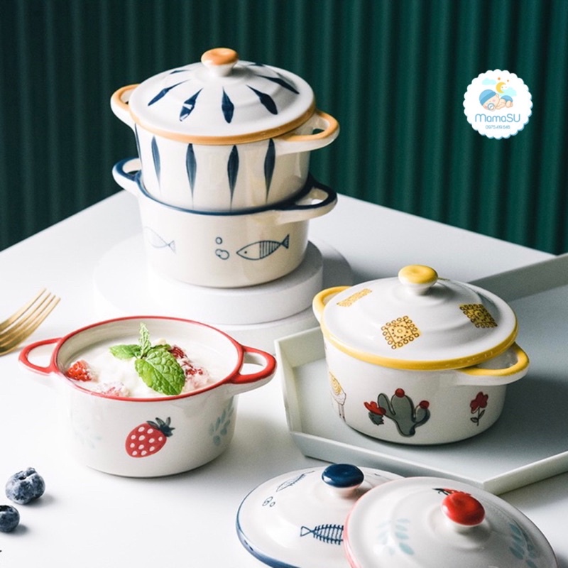 Thiết Bị Điện Gia Dụng > Khác || Bát chén sứ ăn dặm làm bánh flan caramen hình nồi hoạ tiết có nắp cho béCòn hàng