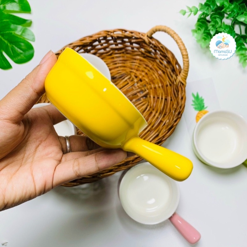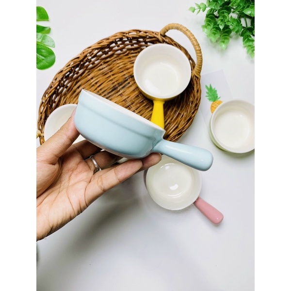 Thiết Bị Điện Gia Dụng > Khác || Bát chén sứ cho bé ăn dặm hình gáo trơn có tay cầm nhiều màuCòn hàng