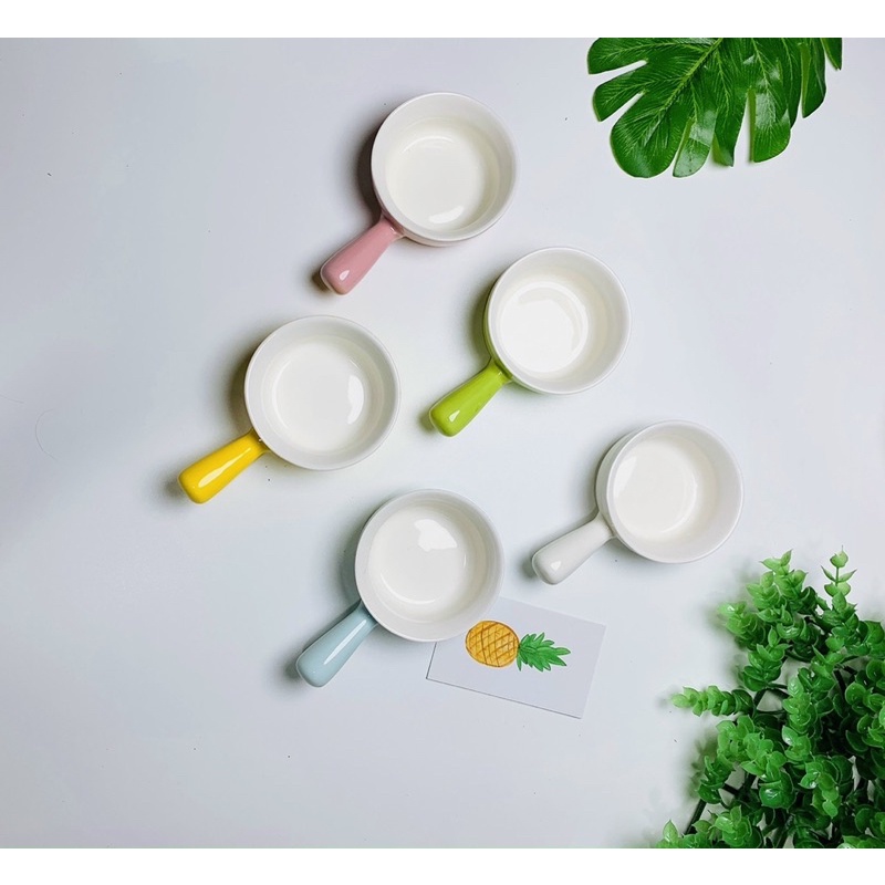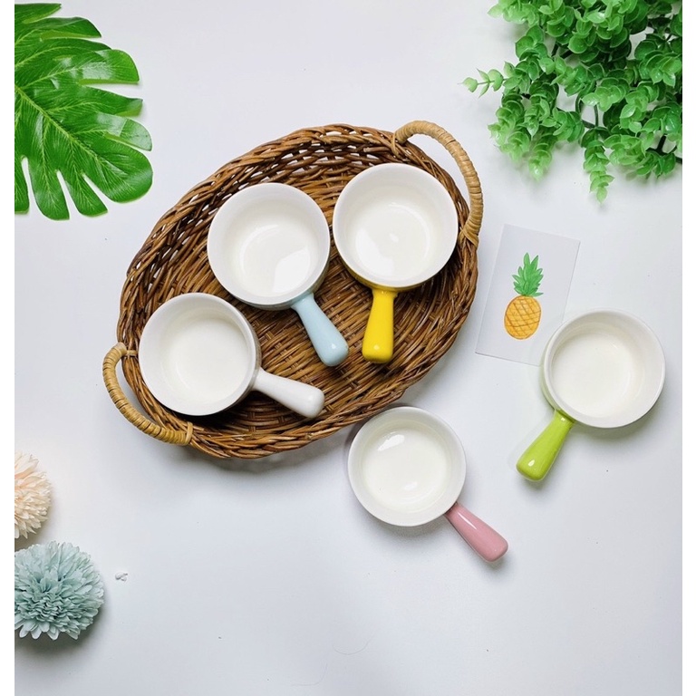 Bát chén sứ cho bé ăn dặm hình gáo trơn có tay cầm nhiều màu