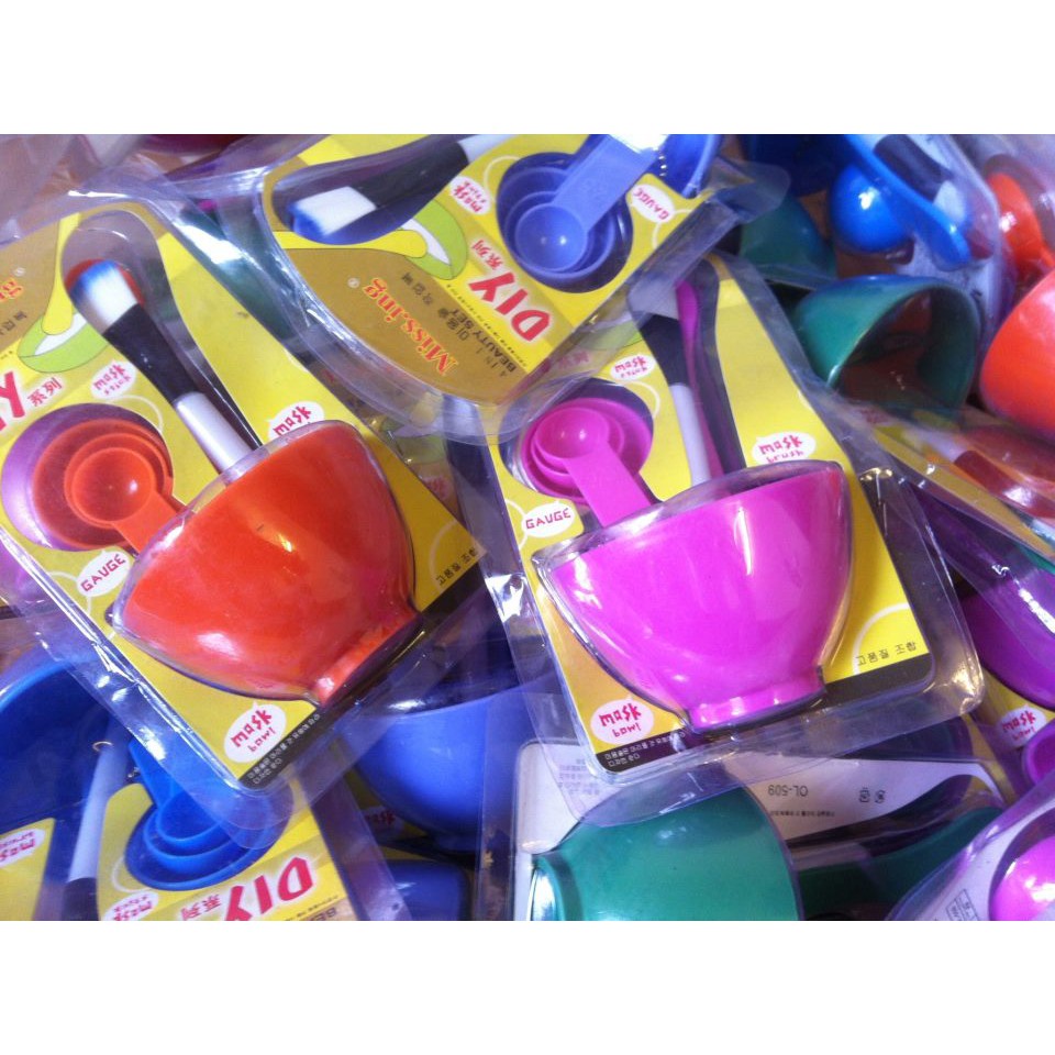 – Bộ dụng cụ đắp mặt nạ tại nhà bao gồm : 1 bát , 1 que trộn , 1 chổi cọ và 3 thìa đong nguyên liệu