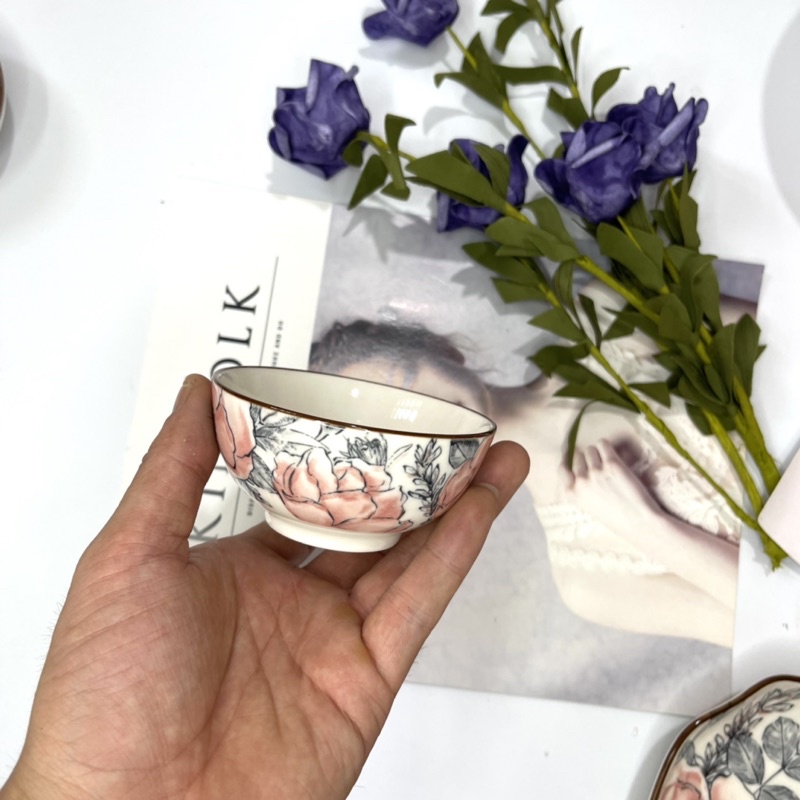 Bát cơm-Bát Chấm-Đĩa Muối sứ BÁT TRÀNG họa tiết Hoa Hồng