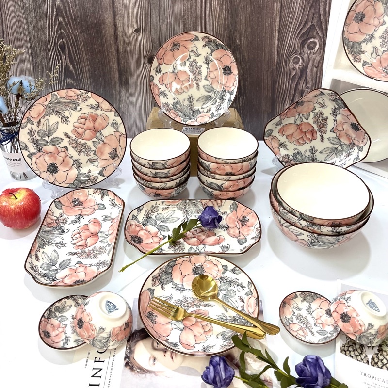Nhà cửa & Đời sống > Bộ đồ bàn ăn > Dĩa || Bát cơm-Bát Chấm-Đĩa Muối sứ BÁT TRÀNG họa tiết Hoa HồngCòn hàng