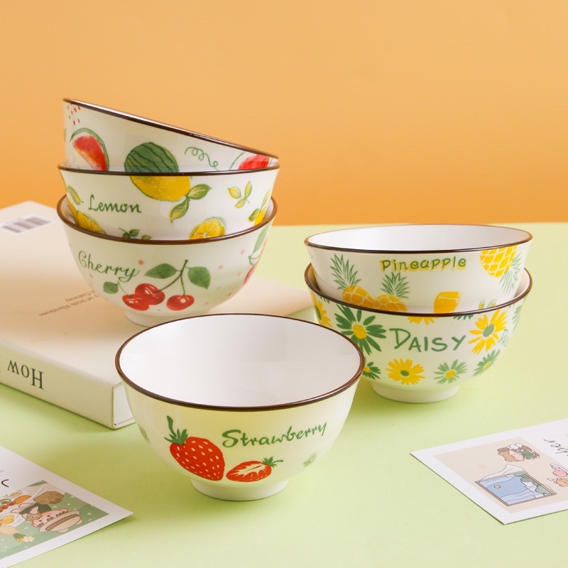Bát cơm dáng tròn siêu xinh, chén ăn cơm sứ sạch hoạ tiết trái cây