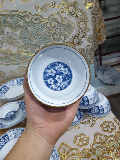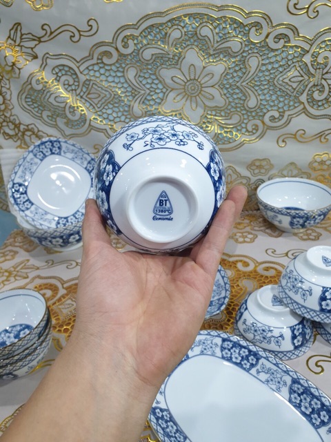 Nhà cửa & Đời sống > Bộ đồ bàn ăn > Dĩa || Bát Cơm Sứ Hoa Đào-Men dầy dặn-Hoạ tiết viền vàng cực sangCòn hàng