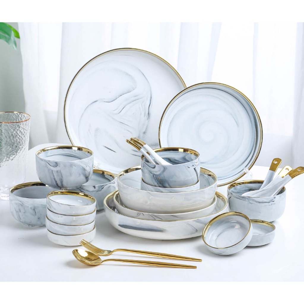 + Bộ bát đĩa được thiết kế sang trọng, hiện đại cùng màu sắc trang nhã, viền mạ vàng nổi bật chắc chắn sẽ tạo thêm sự trang trọng, lịch thiệp cho bàn ăn