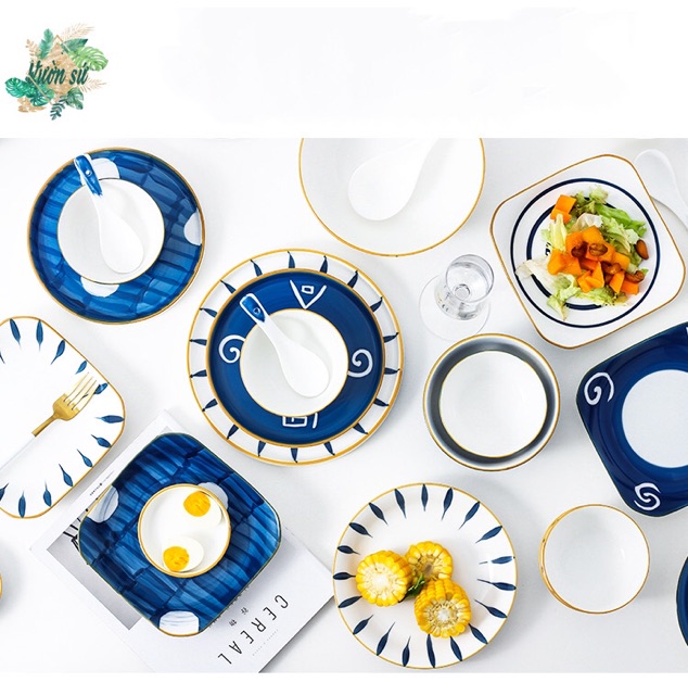 Nhà cửa & Đời sống > Bộ đồ bàn ăn > Dĩa || Bát con, đĩa chấm, thìa sứ họa tiết hoa văn đường kẻ phong cách Nhật Bản - VS70Còn hàng