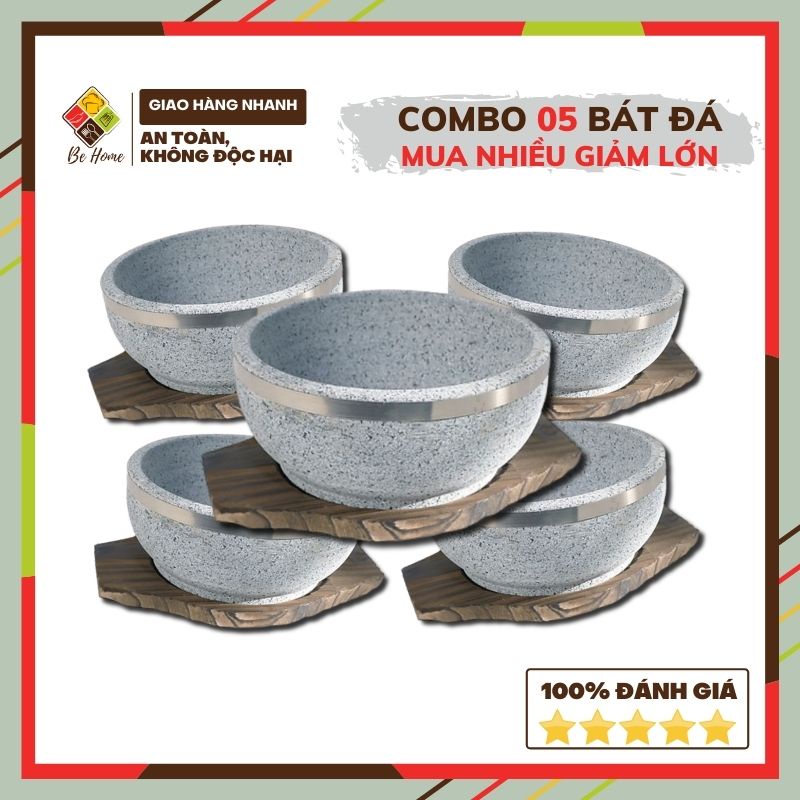 Giới thiệu Bát Đá Giữ Nhiệt Hàn Quốc BEHOME Bát ăn cơm Hàn Quốc Combo 5 Thố đá giữ nhiệt tốt [Tặng Đế Gỗ]