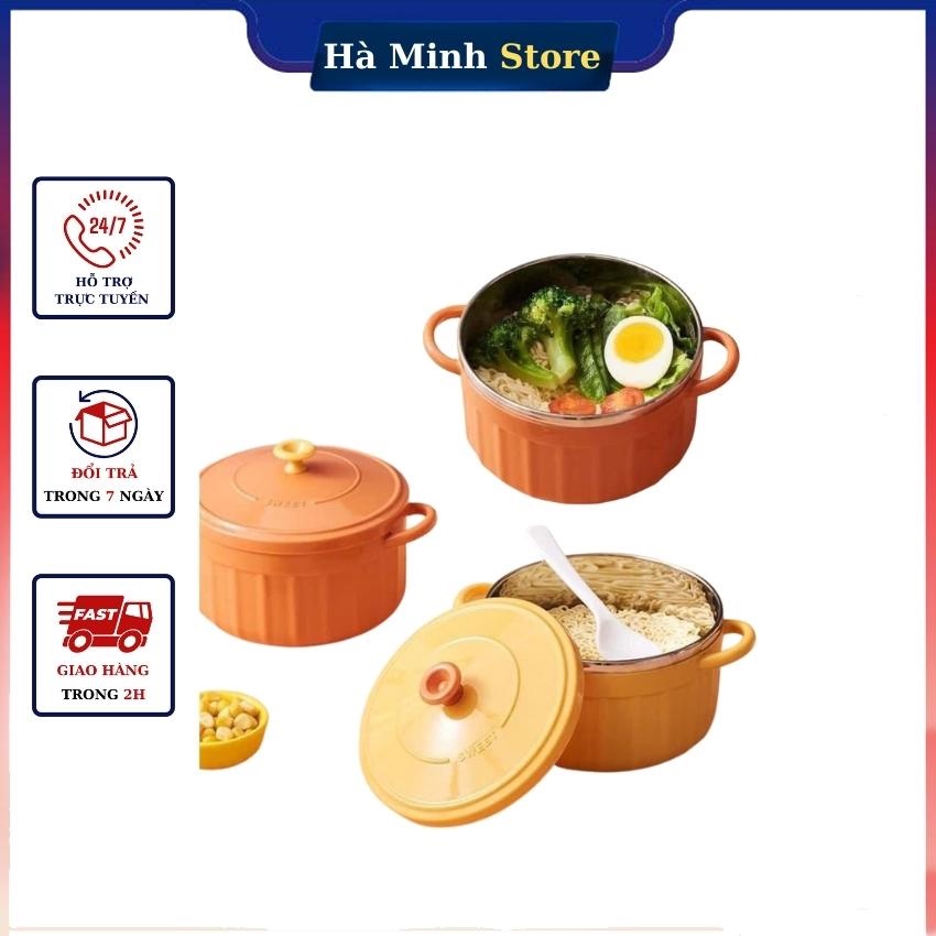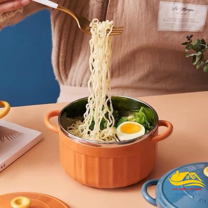 Bát Decor Úp Mỳ Cách Nhiệt 2 Lớp Siêu Xinh Có Nắp Đậy Tay Cầm Kèm Thìa Tô Úp Mì Ruột Inox Siêu BềnThông tin sản phẩm: