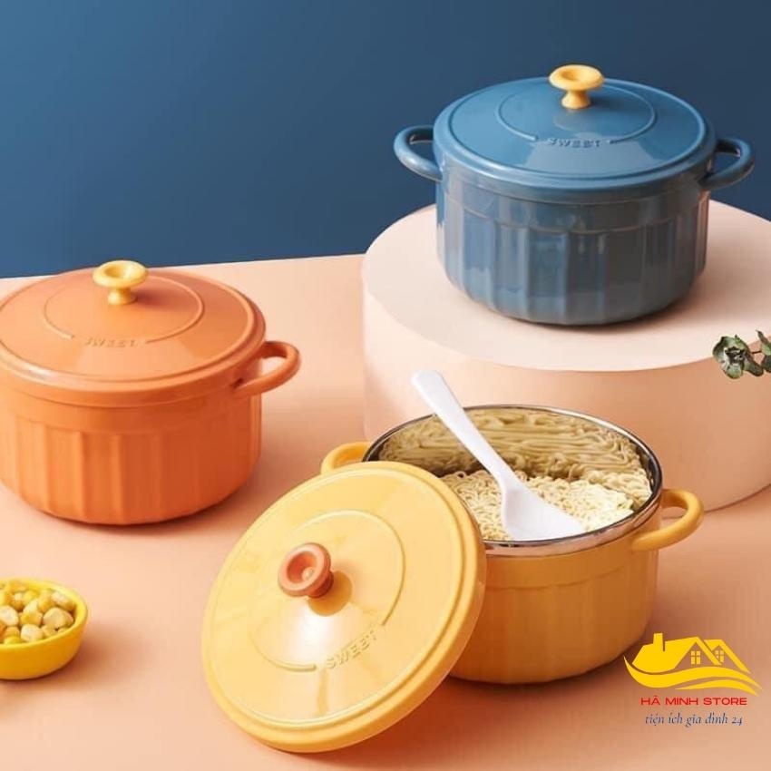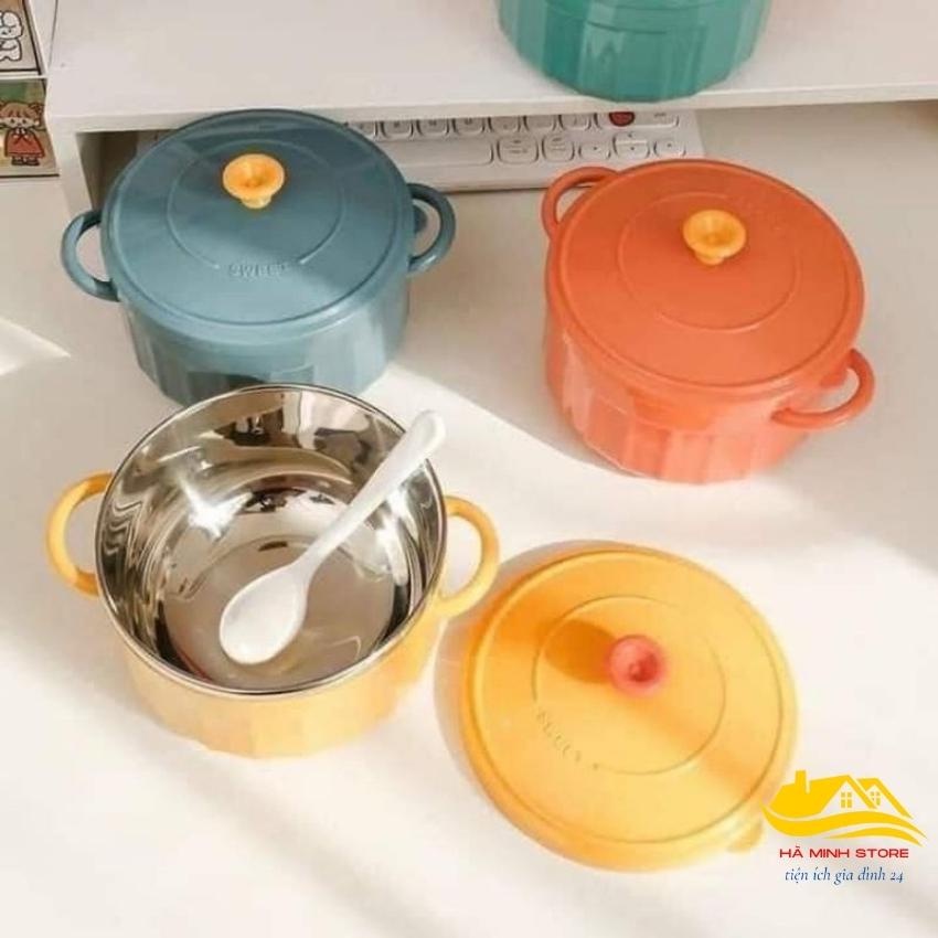 Nhà cửa & Đời sống > Bộ đồ bàn ăn > Tô || Bát Decor Úp Mỳ Cách Nhiệt 2 Lớp Siêu Xinh Có Nắp Đậy Tay Cầm Kèm Thìa Tô Úp Mì Ruột Inox Siêu BềnCòn hàng
