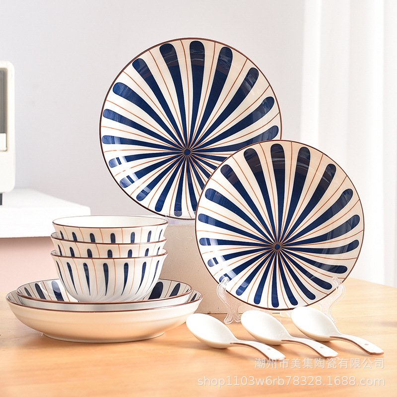 Nhà cửa & Đời sống > Bộ đồ bàn ăn > Dĩa || Bộ bát đĩa 18 món tone xanh trắng phong cách Nhật Bản cao cấp - VS56Còn hàng