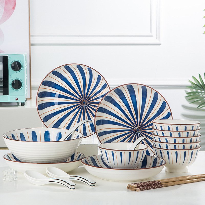 Bộ bát đĩa 18 món tone xanh trắng phong cách Nhật Bản cao cấp - VS56
