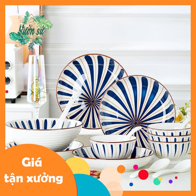 Tên SP: Bộ bát đĩa 18 món tone xanh trắng phong cách Nhật Bản cao cấp - VS56Mã SP: VS56
