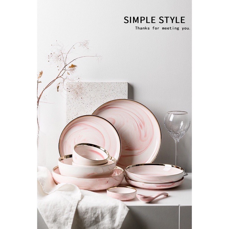 Nhà cửa & Đời sống > Bộ đồ bàn ăn > Dĩa || Bộ bát đĩa 26 món vân hồng viền mạ vàng phong cách Bắc ÂuCòn hàng