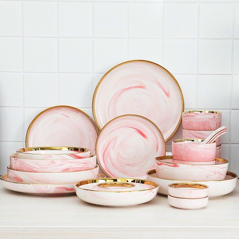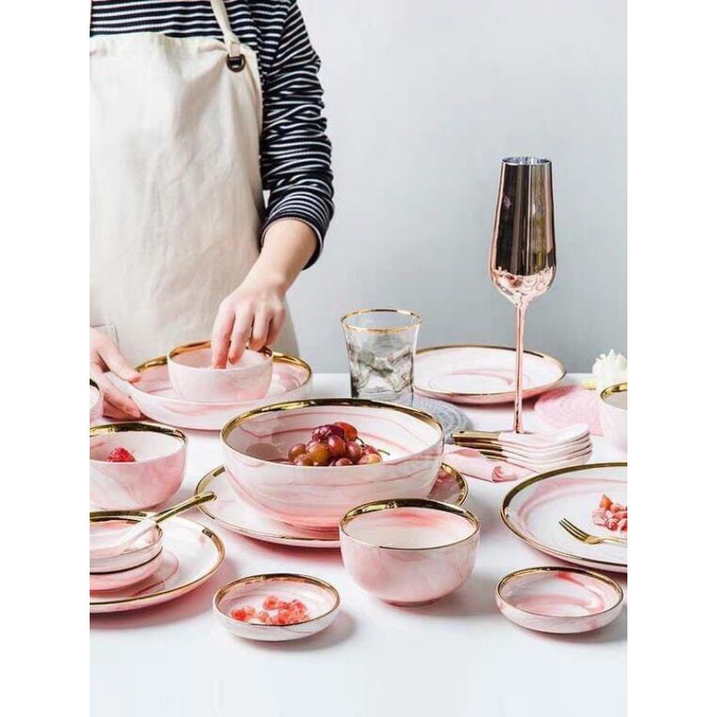 Nhà cửa & Đời sống > Bộ đồ bàn ăn > Dĩa || Bộ bát đĩa 26 món vân hồng viền vàng 24k (LOẠI 1)Còn hàng