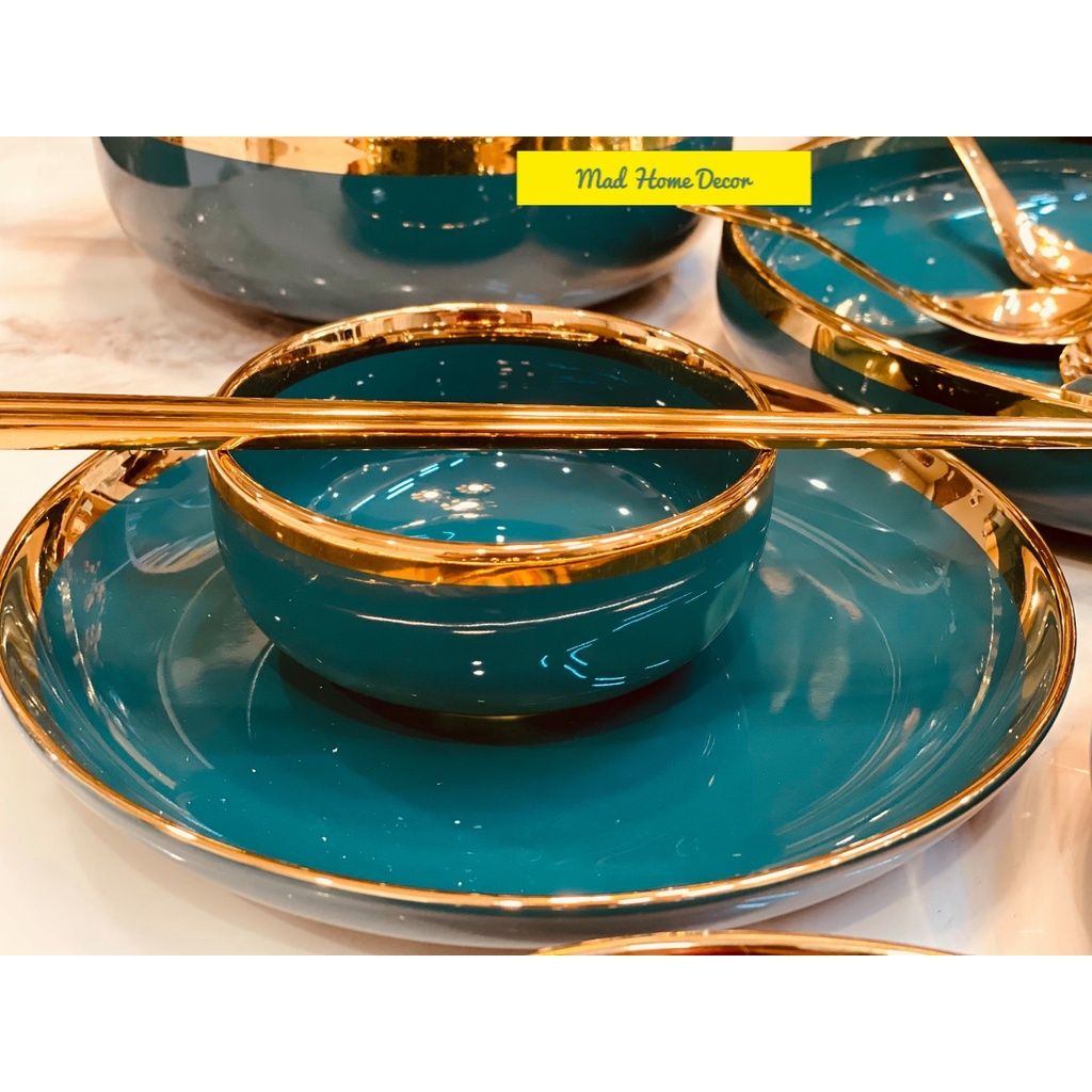 [SET 32 MÓN VIỀN DÁT VÀNG 24K SANG CHẢNH MÀU XANH CỔ VỊT LÒNG XANH]▪️Chất liệu gốm sứ với nguyên liệu tự nhiên được nung ở nhiệt độ cao hơn 1300 độ C giúp khử chì và kim loại nặng an toàm cho sức khỏe.