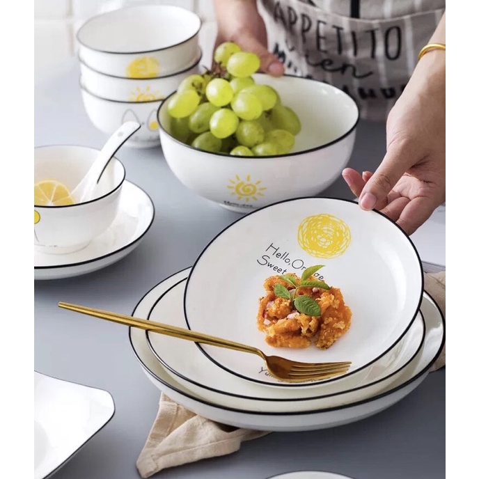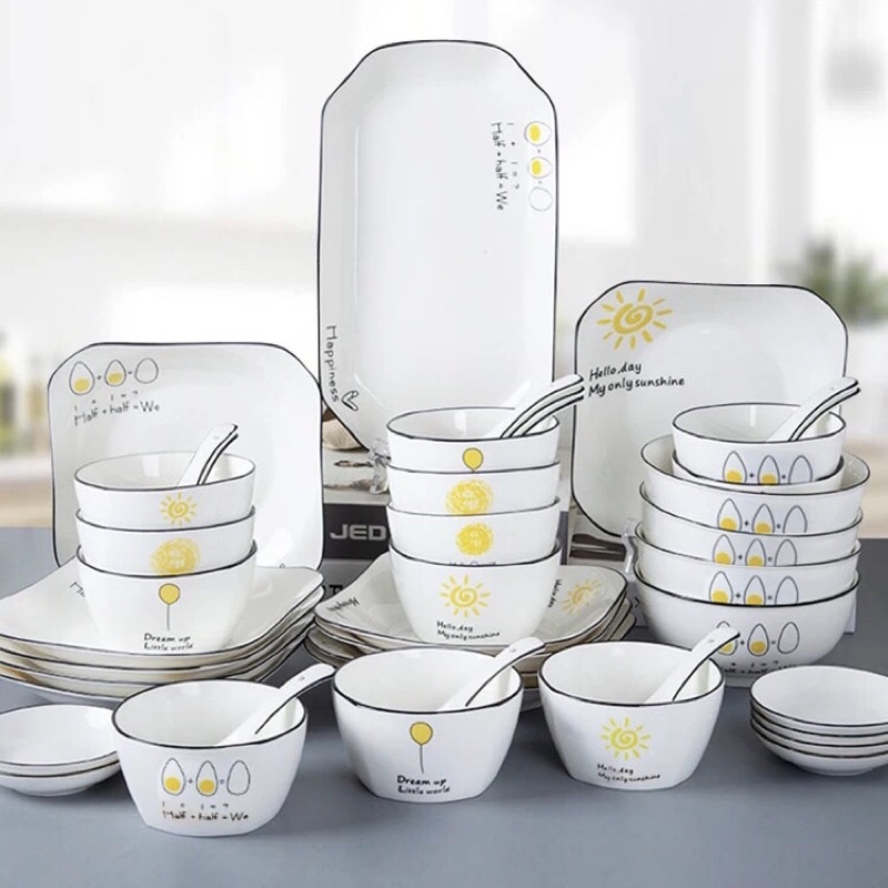Nhà cửa & Đời sống > Bộ đồ bàn ăn > Dĩa || Bộ bát đĩa 4-6 người họa tiết mặt trời cực đáng yêu (hàng sẵn)- VS300Còn hàng