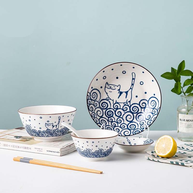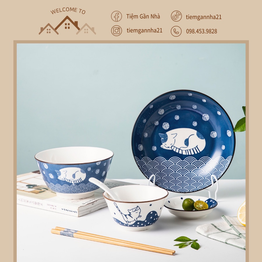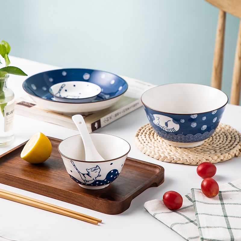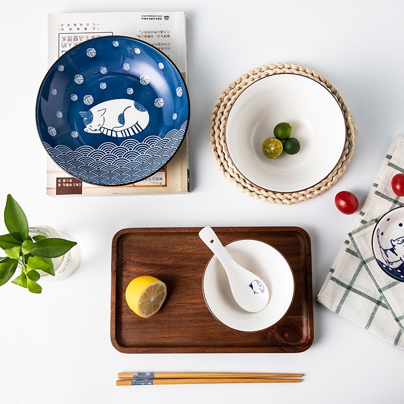 Nhà cửa & Đời sống > Bộ đồ bàn ăn > Tô || Bộ bát đĩa 6 món hình mèo phong cách Nhật Bản, quà tặng độc thân, set bát đĩa 1 ngườiCòn hàng