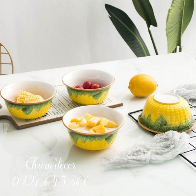 Bát, đĩa ăn trang trí hình bắp ngôChất liệu : gốm sứ