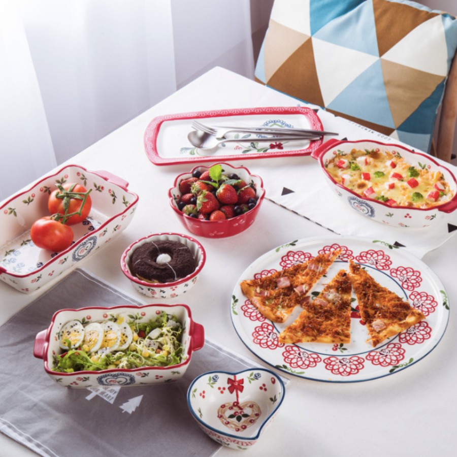 Nhà cửa & Đời sống > Bộ đồ bàn ăn > Dĩa || Bát đĩa, bát đĩa decor họa tiết Cherry siêu xinh phong cách Hàn Quốc - Thố nướng và đĩaCòn hàng
