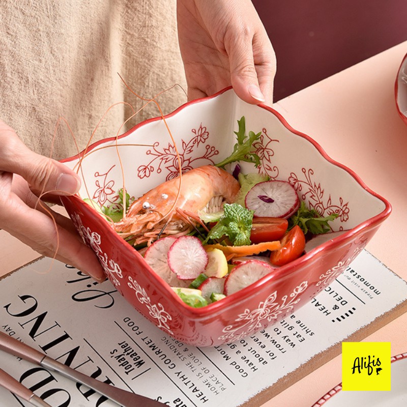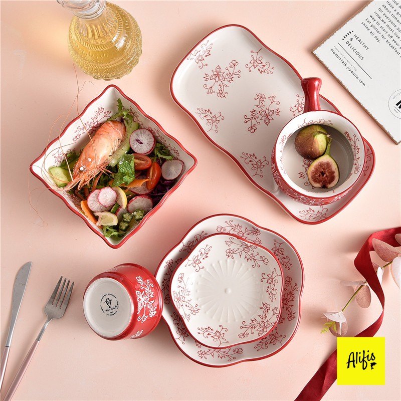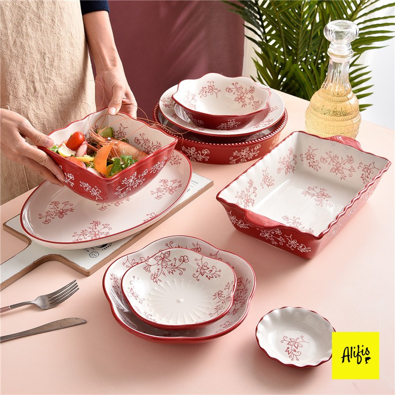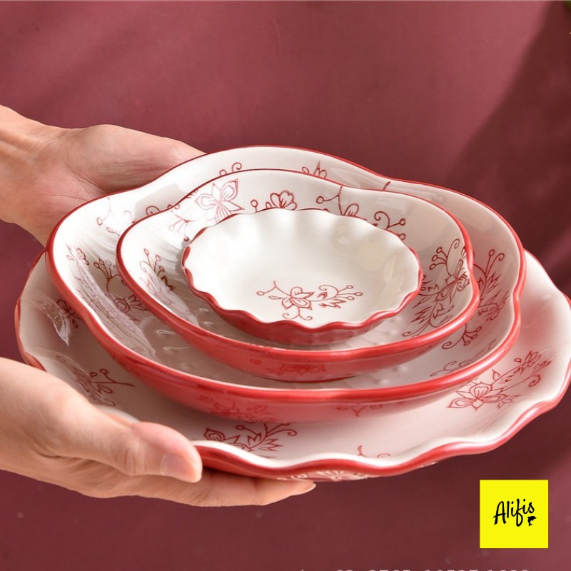 Nhà cửa & Đời sống > Bộ đồ bàn ăn > Dĩa || Bát đĩa, bát đĩa decor hoa trắng nền đỏ - phụ kiện bàn ăn – bán lẻ theo mónCòn hàng