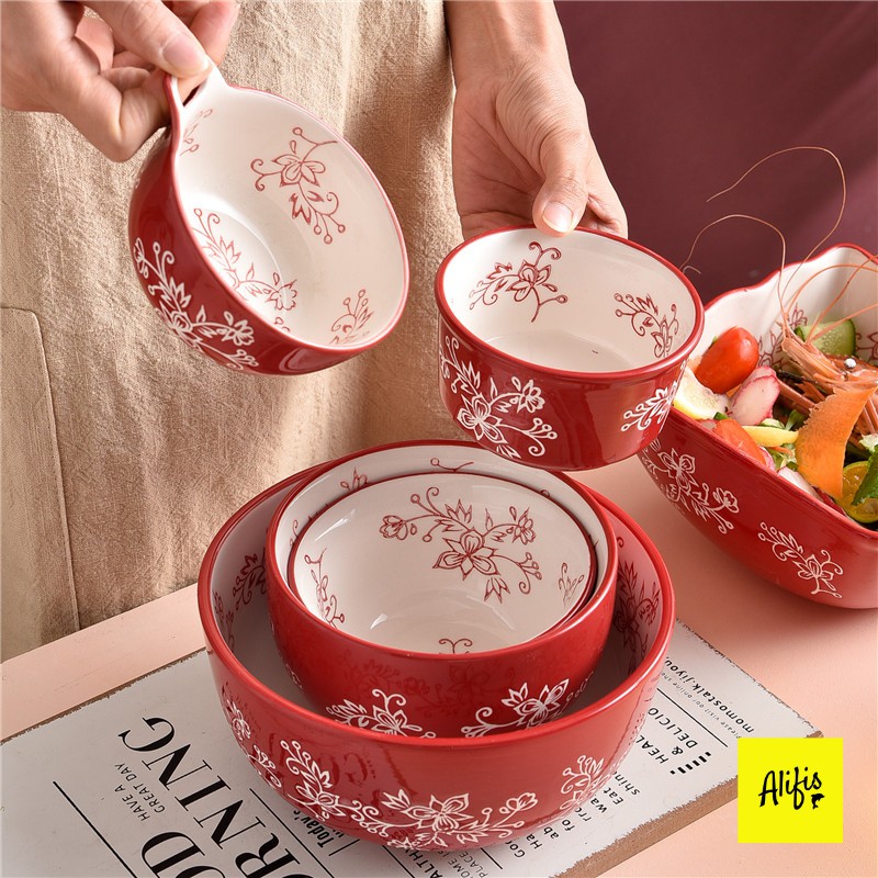Giới thiệu Bát đĩa, bát đĩa decor hoa trắng nền đỏ - phụ kiện bàn ăn – bán lẻ theo món