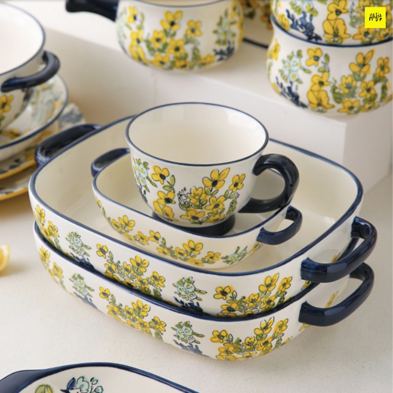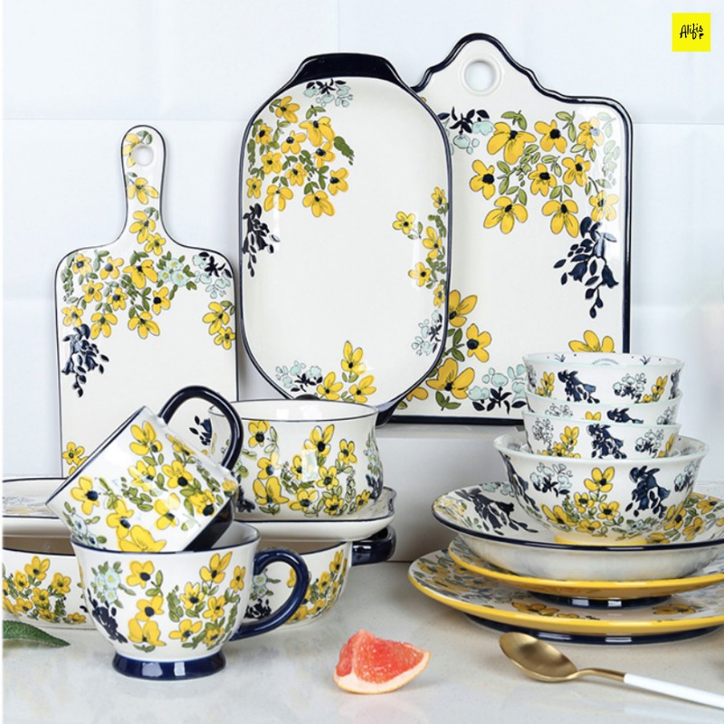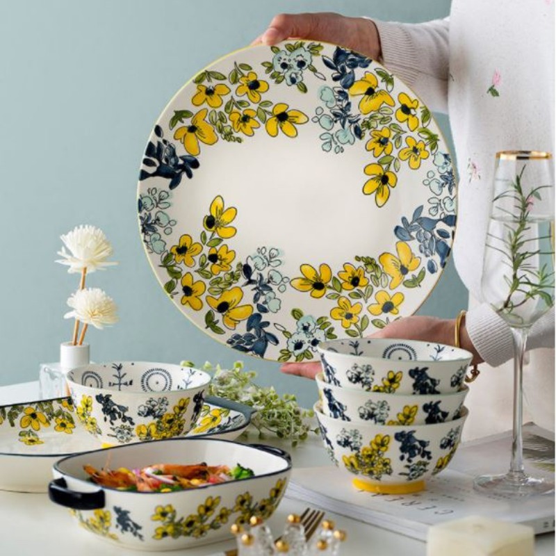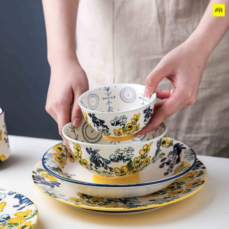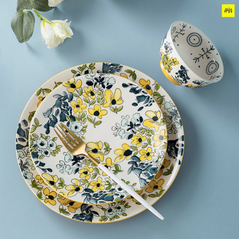 Nhà cửa & Đời sống > Bộ đồ bàn ăn > Dĩa || Bát đĩa, bát đĩa sứ họa tiết mai vàng– phụ kiện bàn ăn sang trọngCòn hàng