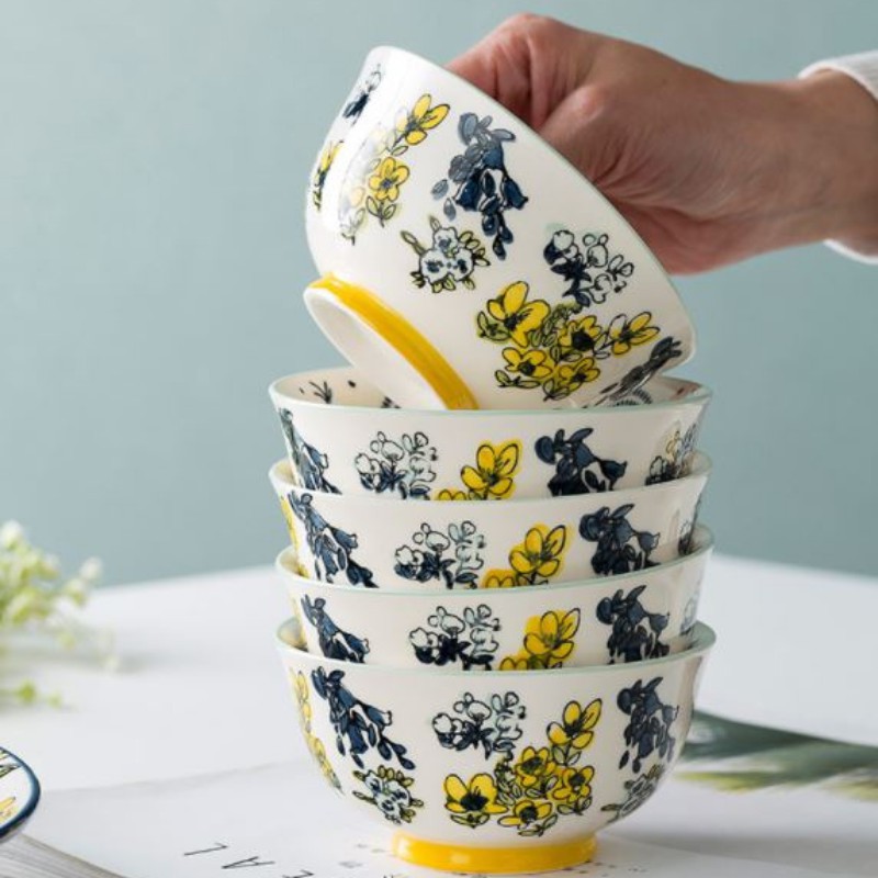 - Bát đĩa sứ được thiết kế độc đáo với họa tiết hoa mai vàng xinh xắn