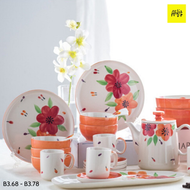 Giới thiệu Bát đĩa, bát đĩa sứ lẻ họa tiết hoa cam cực xinh - dùng cho bàn ăn và decor