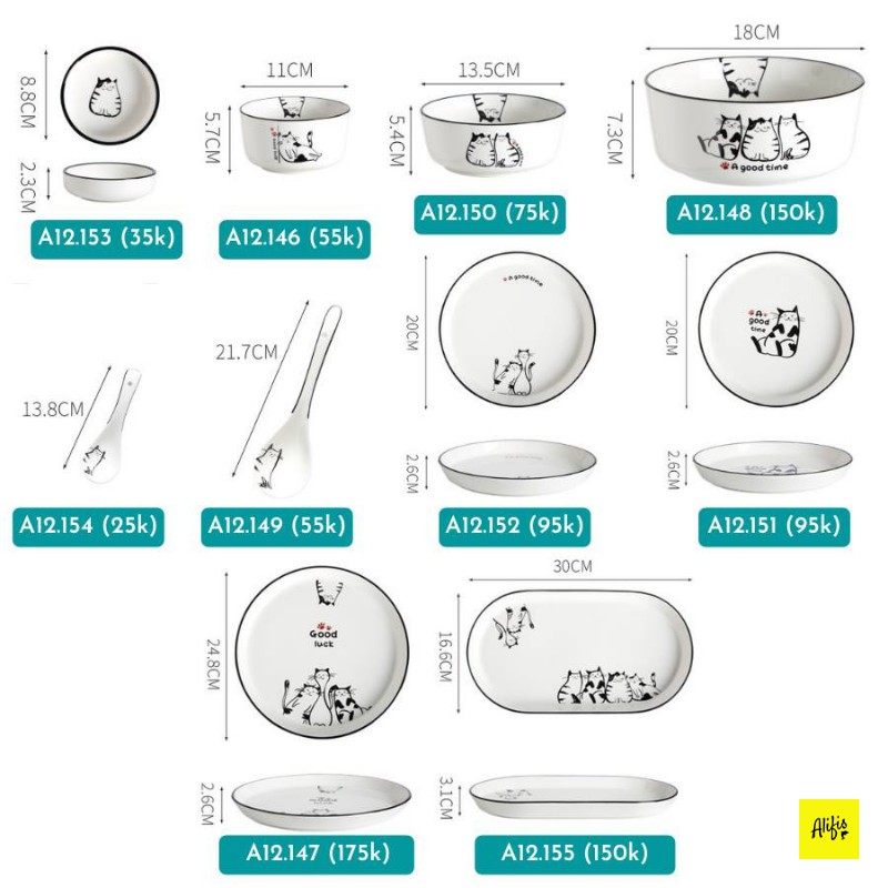 Nhà cửa & Đời sống > Bộ đồ bàn ăn > Dĩa || Bát đĩa, bát đĩa sứ lẻ họa tiết mèo đáng yêu – dùng cho bàn ăn và decorCòn hàng