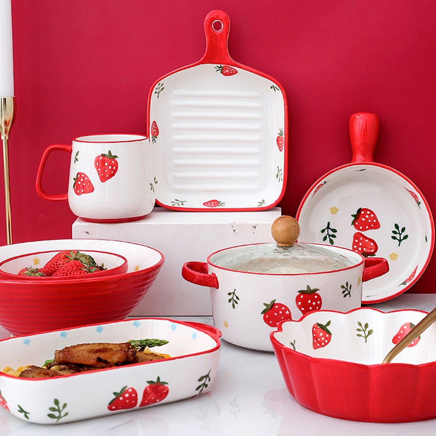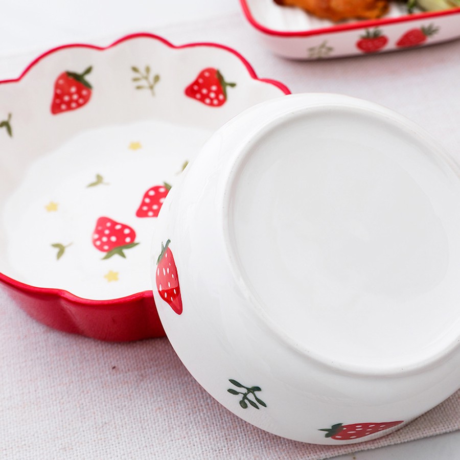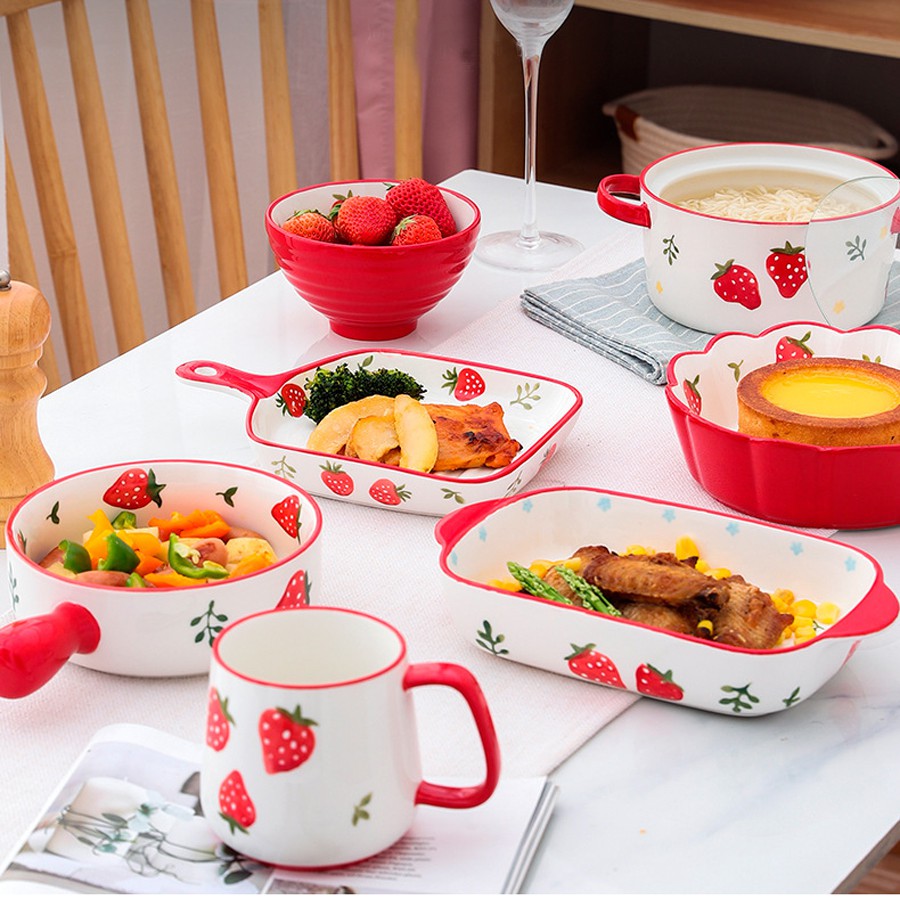 Nhà cửa & Đời sống > Bộ đồ bàn ăn > Dĩa || Bát đĩa, bát đĩa sứ phong cách Hàn Quốc 8 món họa tiết dâu tây đỏ cực xinhCòn hàng