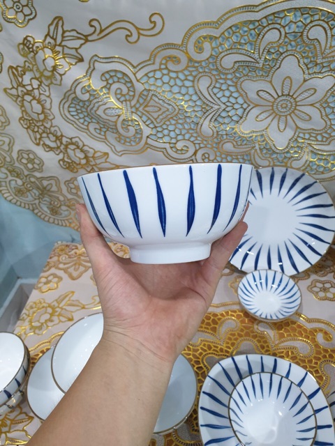 Giới thiệu Bộ Bát Đĩa Bát Tràng Họa Tiết Kẻ Cao Cấp-Men Dầy Dặn-Viền Màu Vàng Sang Trọng-Đẳng Cấp-Giao Hàng Toàn Quốc An Toàn