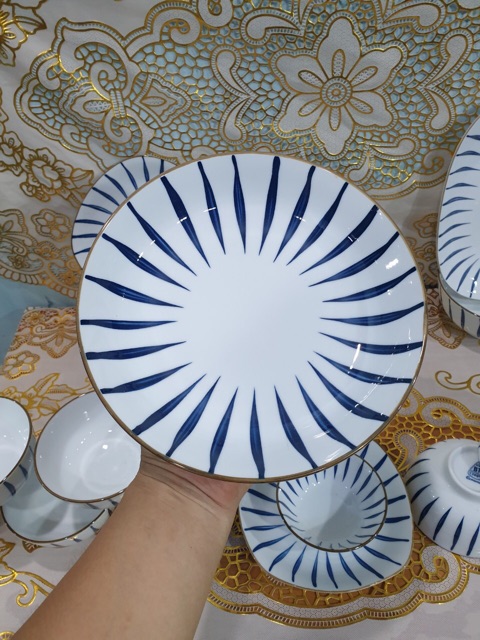 Nhà cửa & Đời sống > Bộ đồ bàn ăn > Dĩa || Bộ Bát Đĩa Bát Tràng Họa Tiết Kẻ Cao Cấp-Men Dầy Dặn-Viền Màu Vàng Sang Trọng-Đẳng Cấp-Giao Hàng Toàn Quốc An ToànCòn hàng