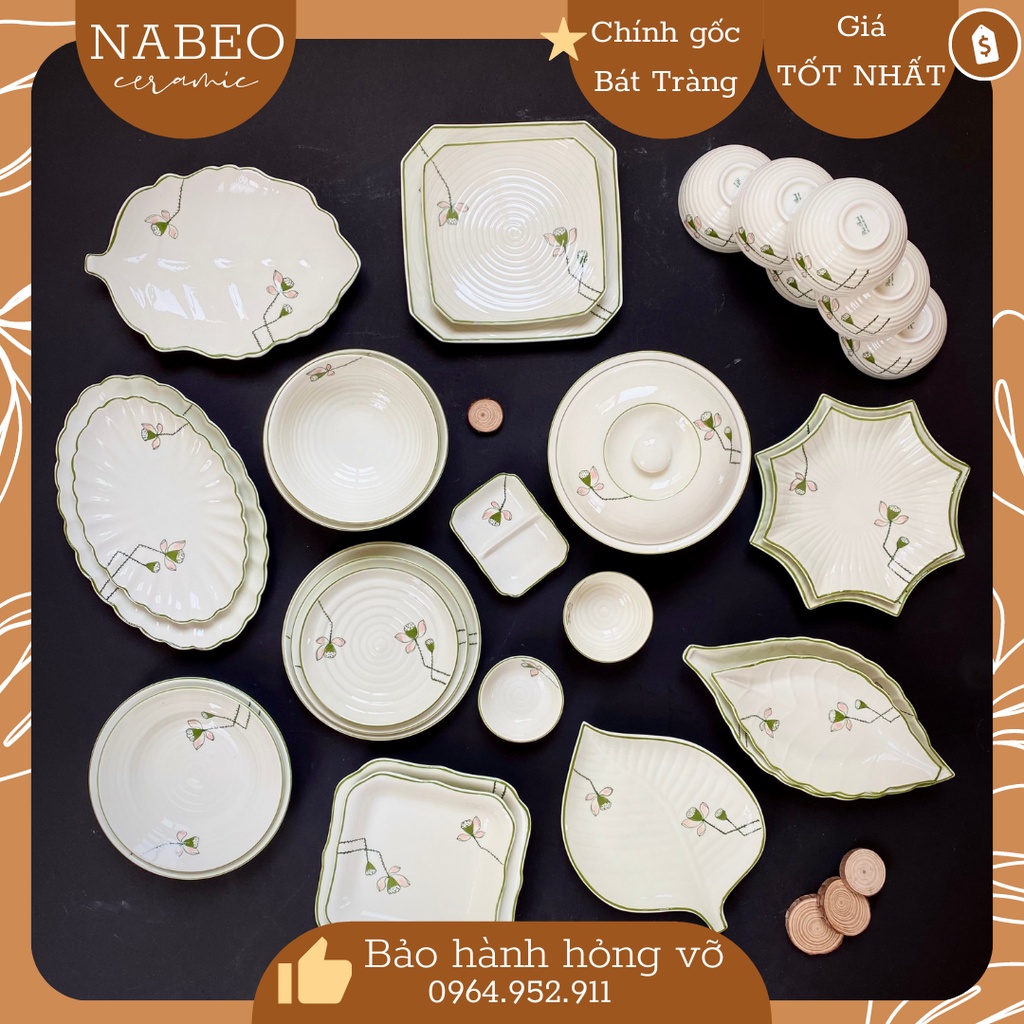 Bát Đĩa Bát Tràng Sen Đài men kem, Bát Tô, Đĩa Nhiều Kiểu Dáng, Bát đĩa gia đình ( có bán theo bộ và bán lẻ ) - Gốm Sứ B