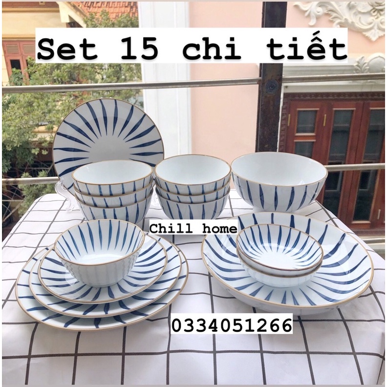 Nhà cửa & Đời sống > Bộ đồ bàn ăn > Tô || Bộ bát đĩa Bát Tràng,set bát đĩa sứ họa tiết kẻ,bát dĩa decor cao cấp men dày dặn sáng bóng cao cấp cho mâm cơm gia đìnhCòn hàng