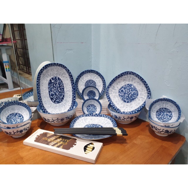 Nhà cửa & Đời sống > Bộ đồ bàn ăn > Dĩa || Bộ Bát Đĩa Bát Tràng Vân Cổ (kèm 10 đôi đũa khảm đồng)Họa Tiết Vân Nổi Sang Trọng-Men Dầy Dặn-dùng được các máy vi sóngCòn hàng