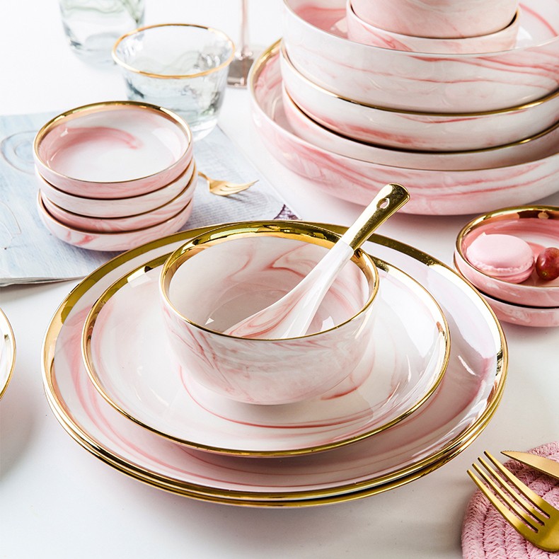 Nhà cửa & Đời sống > Bộ đồ bàn ăn > Dĩa || Bộ bát đĩa, bộ bát đĩa sứ 26 món viền vàng cao cấp cho 6 người - sẵn nhiều màu - BAT26Còn hàng