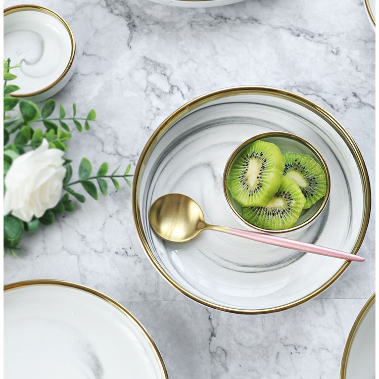 + Bộ bát đĩa được thiết kế sang trọng, hiện đại cùng màu sắc trang nhã, viền mạ vàng nổi bật chắc chắn sẽ tạo thêm sự trang trọng, lịch thiệp cho bàn ăn
