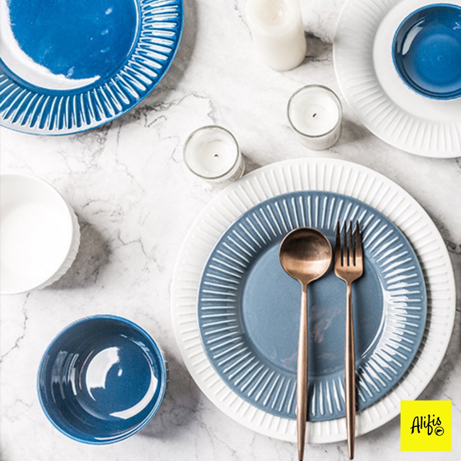 Nhà cửa & Đời sống > Bộ đồ bàn ăn > Dĩa || Bộ bát đĩa, bộ bát đĩa sứ trắng mix xanh cao cấp – 28 món cho 6 người – phong cách Bắc Âu (Hàng có sẵn)Còn hàng